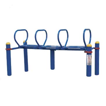 鍛煉方法:雙手抓住鞍馬訓(xùn)練器的兩側(cè)把手,把身體撐起,在其上做各種回旋轉(zhuǎn)、擺動(dòng)、平移運(yùn)動(dòng),以次鍛煉臂力、軀